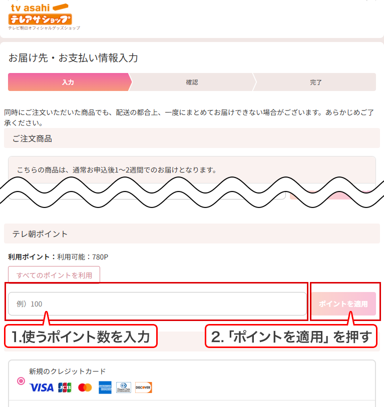 獲得予定ポイントは商品の購入やテレ朝ポイントサイトにおける商品の交換にはご利用いただけません。