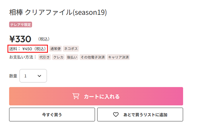 商品ごとの配送料金は、商品詳細ページにてご確認いただけます。