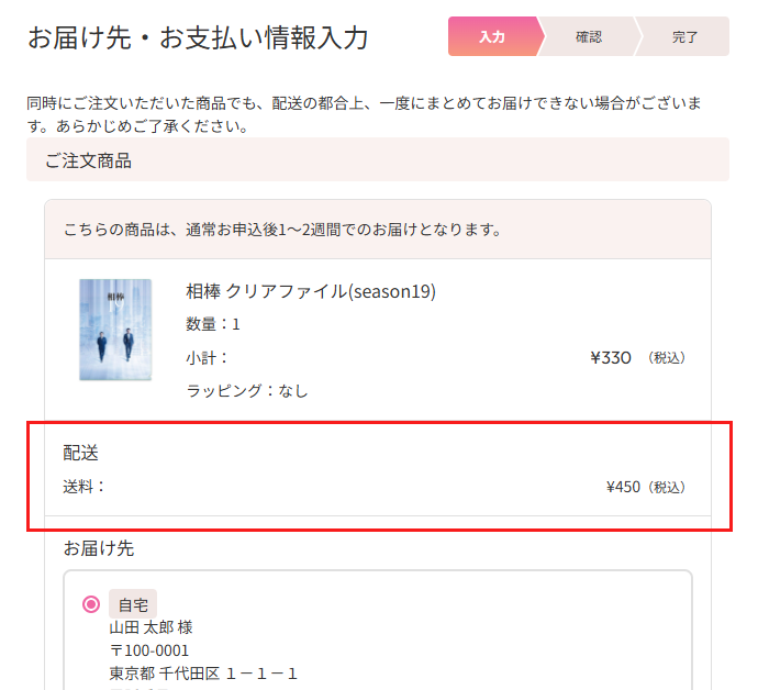 ※商品ページの配送料欄に「別配送」「冷蔵」「冷凍」のアイコンが付された商品や商品ページに同梱不可の注意書きがある商品は、それぞれに配送料が加算されます。