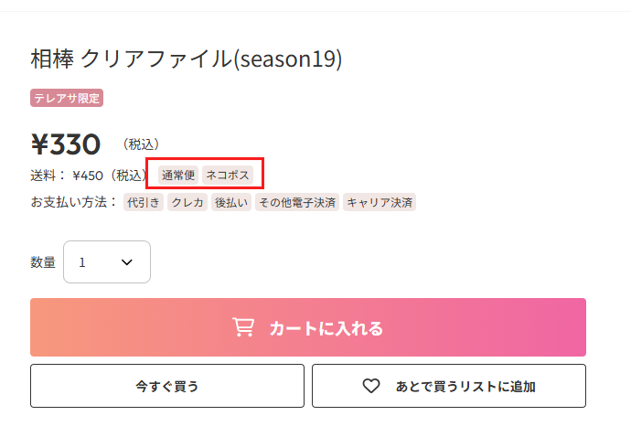 ※複数の商品をご購入いただき、かつ同梱での発送が可能な場合には、各商品の送料のうち最も高い金額のみを適用いたします。