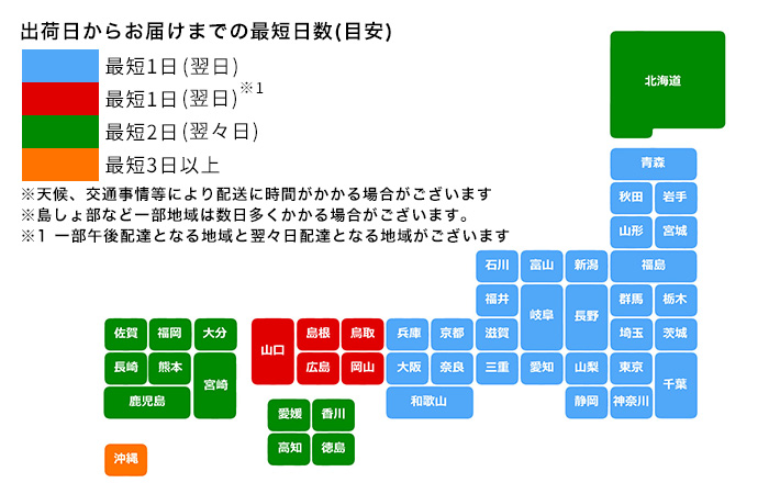 出荷日からお届けまでの最短日数(目安)