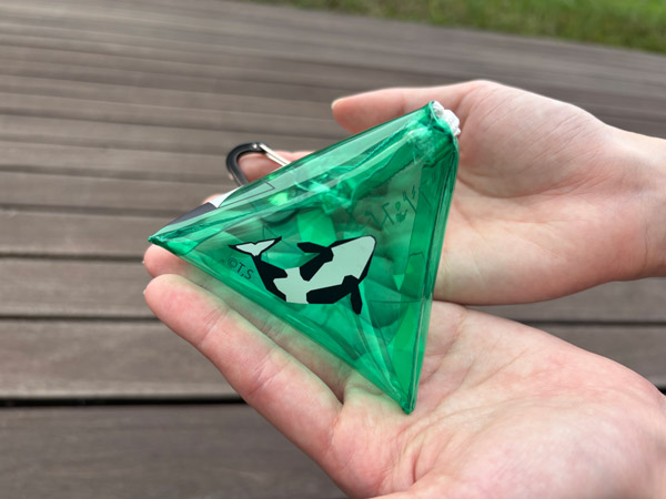 シャチキーホルダーと一緒にバッグにつけるのはもちろん、シャチのおうちとしてキーホルダーを中に入れることも!